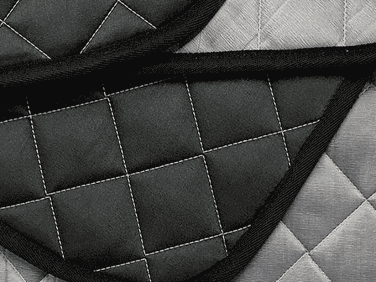 Chaque isolant est fini avec une bordure 100 % polypropylène, disponible en deux tons de gris ou en noir selon le modèle choisi.