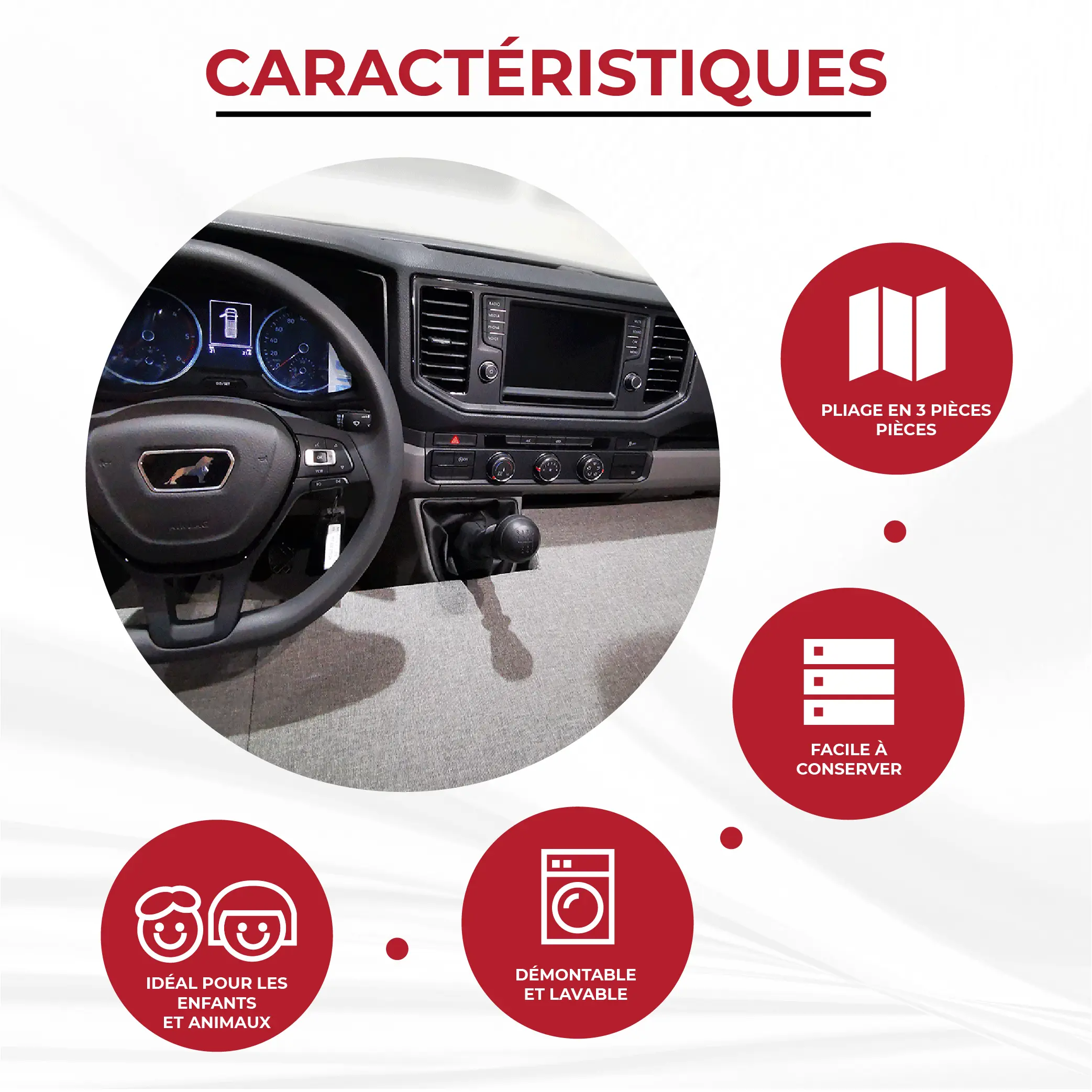 Ce lit avant se déploie en quelques secondes : il suffit de le placer dans l’habitacle, d’étendre les sections et d’avancer les sièges avant pour le maintenir contre le tableau de bord. Pour renforcer la stabilité, il est recommandé de passer la ceinture de sécurité sur le côté passager.